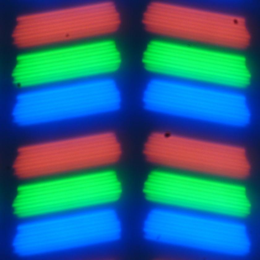 В данном смартфоне используется матрица типа IPS. Микрофотографии демонстрируют типичную для IPS структуру субпикселей: