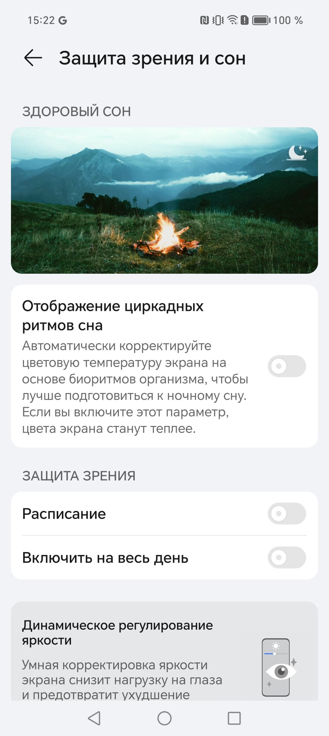 В ее описании приведена достаточно корректная информация. В принципе, яркий свет может приводить к нарушению суточного (циркадного) ритма (см. статью про iPad Pro с дисплеем 9,7 дюйма), но все решается снижением яркости до низкого, но еще комфортного уровня, а искажать цветовой баланс, уменьшая вклад синего, нет абсолютно никакого смысла.