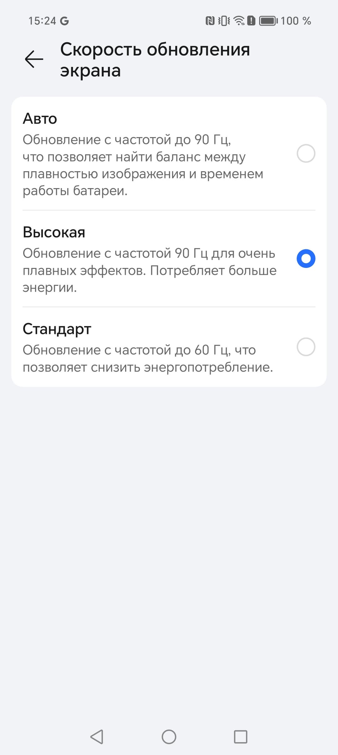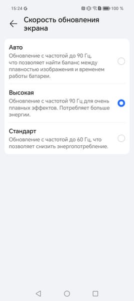 В настройках экрана можно включить режим с повышенной до 90 Гц частотой обновления: