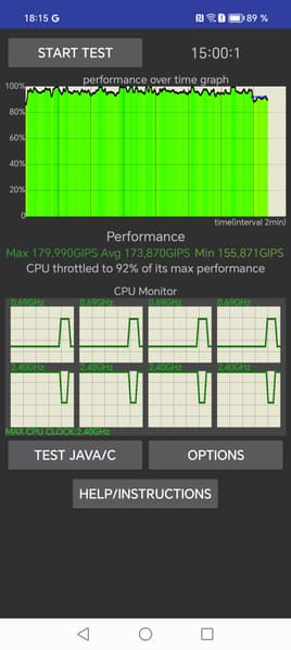 Тестирование традиционно проводилось на обычном уровне энергопотребления без использования функций энергосбережения, хотя таковые в аппарате имеются. Условия тестирования: выставлен минимальный комфортный уровень яркости (примерно 100 кд/м²). Тесты: беспрерывное чтение в программе Moon+ Reader (со стандартной, светлой темой); беспрерывный просмотр видео в HD-качестве (720р) через домашнюю сеть Wi-Fi; игра Injustice 2 с автонастройками графики.