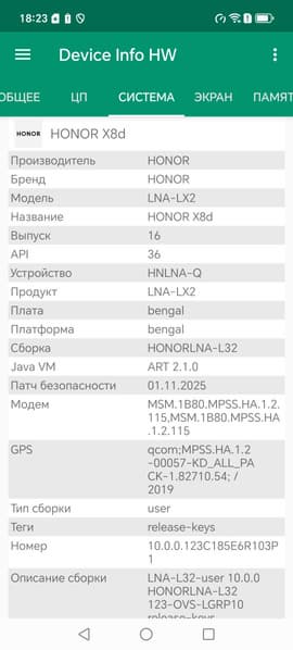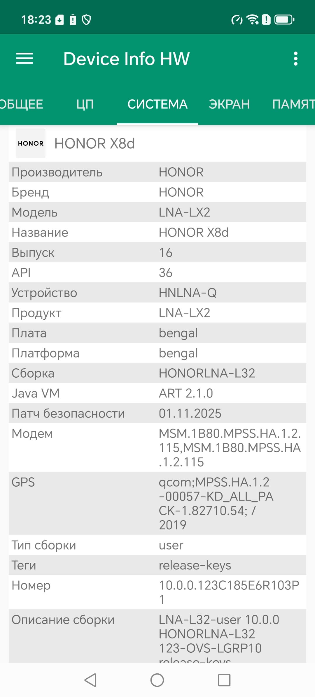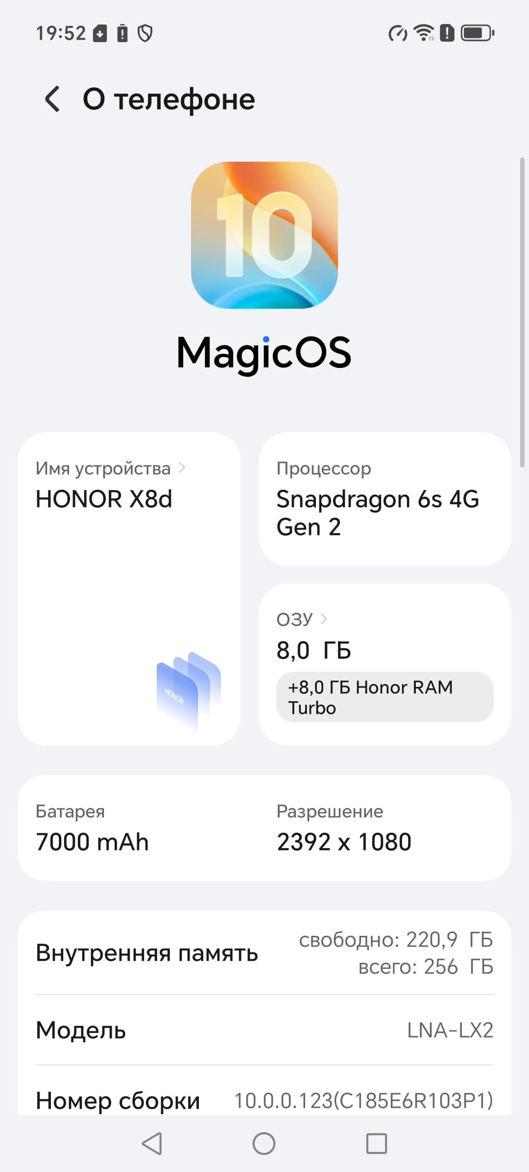 Основные характеристики Honor X8d (модель LNA-LX2)