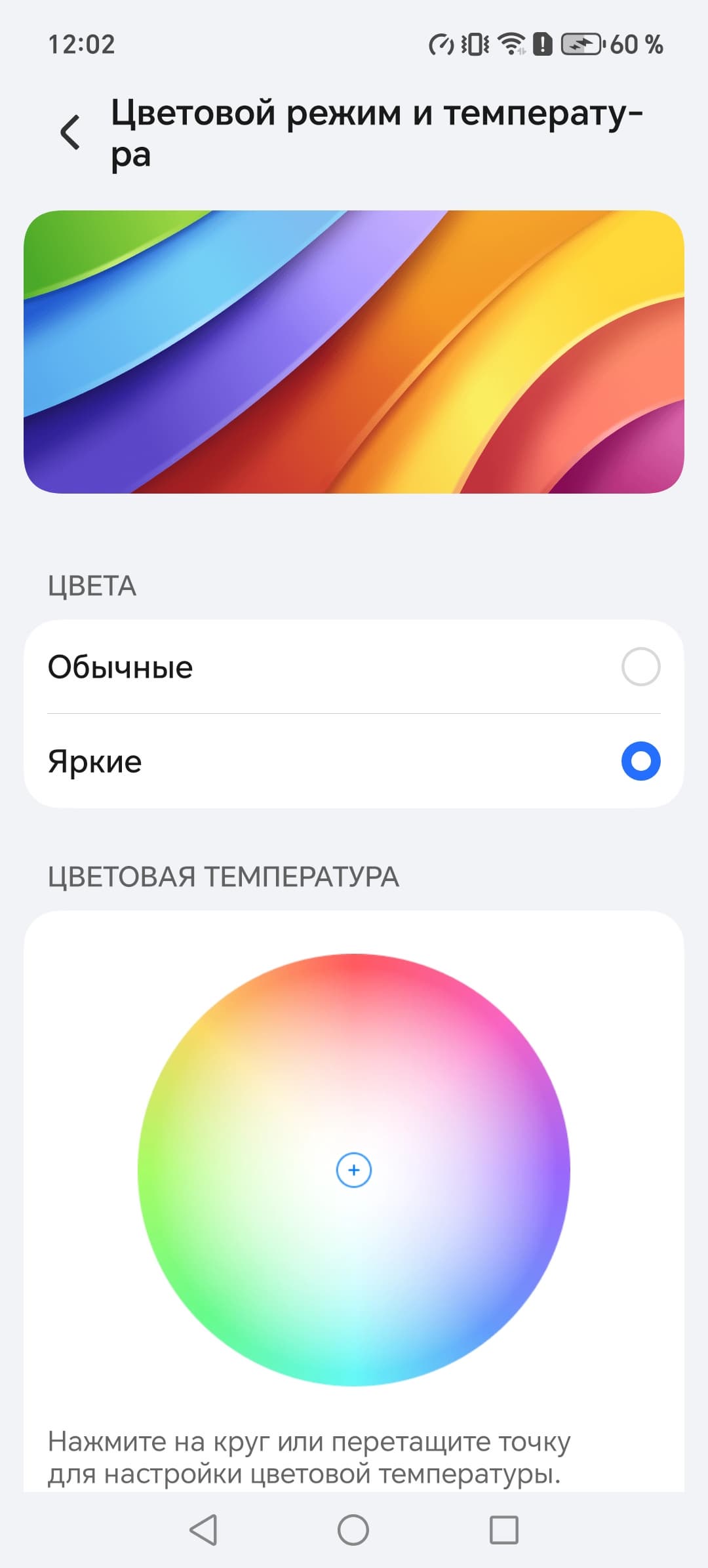 Фотография выше получена при активном профиле Обычные [цвета] в настройках экрана, всего их два: