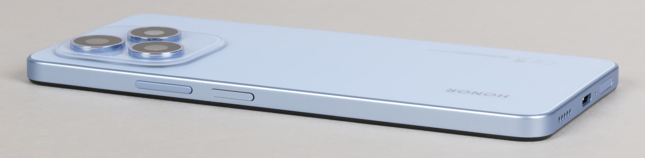 Honor X8d выглядит дороже, чем есть на самом деле. Смартфон использует популярный стиль оформления задних камер в виде «конфорок», и это издалека даже может позволять походить на Apple iPhone Pro. В любом случае, отдельно стоящие окошки камер визуально облегчают дизайн, делают его более легким и воздушным, нежели привычная «китайская шайба» на всю спинку.