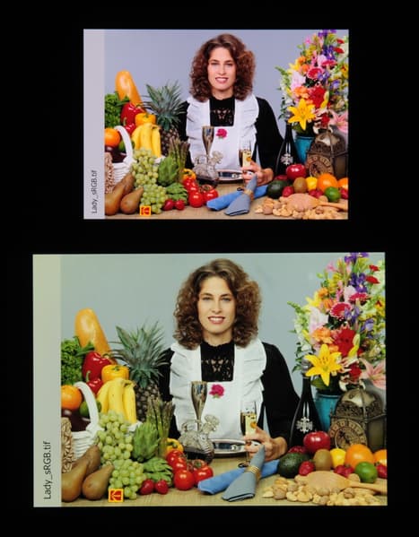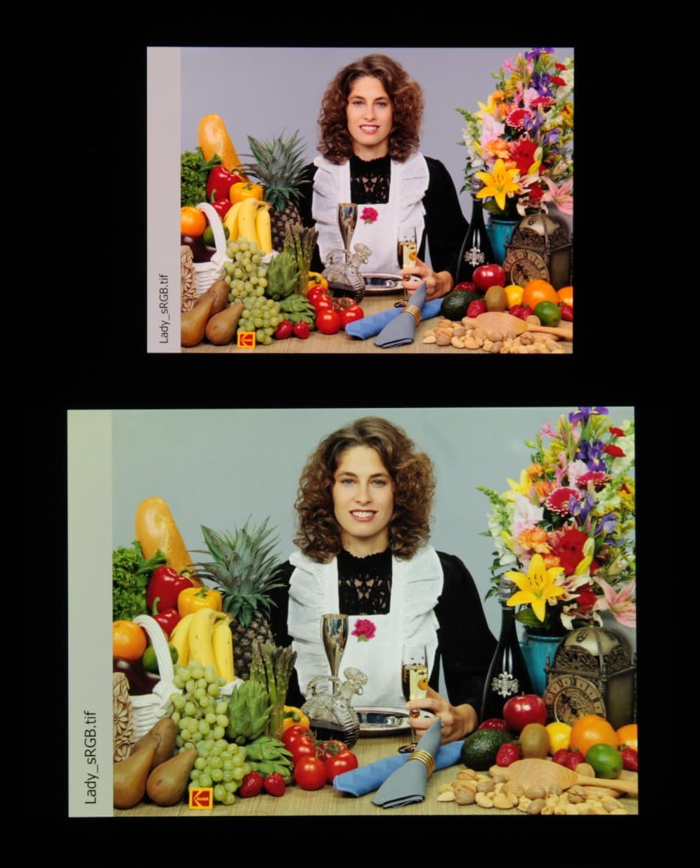 Отметим, что на экранах с уширенным цветовым охватом (без соответствующей коррекции) цвета́ обычных изображений, оптимизированных для устройств sRGB, выглядят неестественно насыщенными.