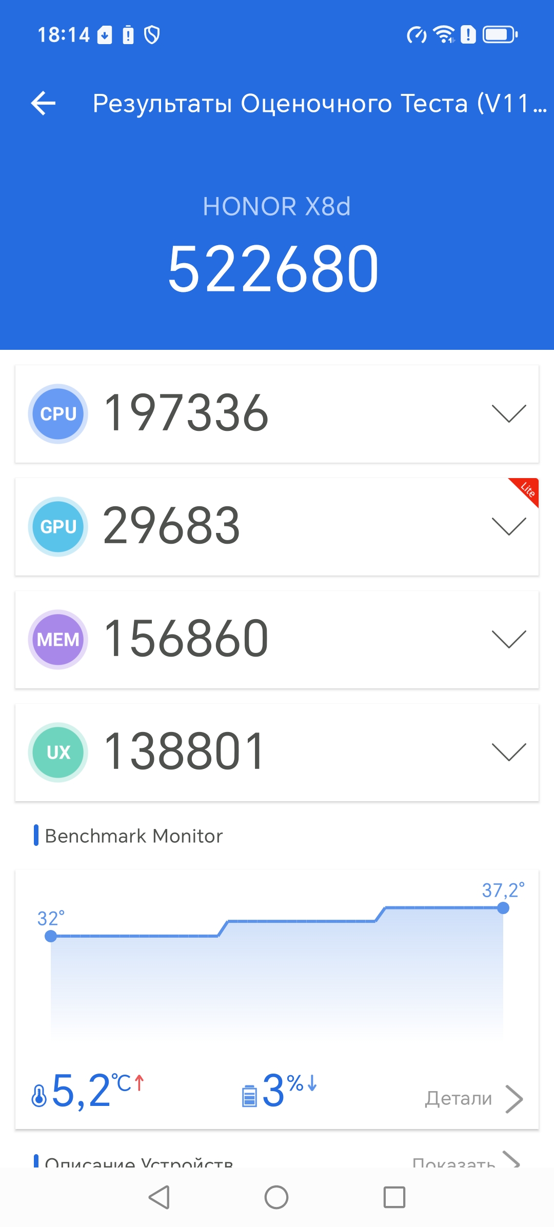 Honor X8d получил литий-ионный полимерный аккумулятор с большой емкостью 7000 мА·ч, и в тестах этот смартфон ожидаемо демонстрирует высокий уровень автономности во всех сценариях, включая игровой.