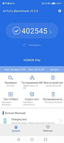 Ёмкость встроенного аккумулятора Honor X9a, несмотря на тонкий и довольно легкий корпус, составляет внушительные 5100 мАч. Это, и то, что поддерживается 40-ваттная быстрая зарядка, внушают уважение. Позже проверим, как это отразилось на автономности подопытного: производитель на своих официальных страницах обещает, что с автономностью у смартфона все очень хорошо и даже отлично.