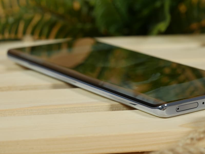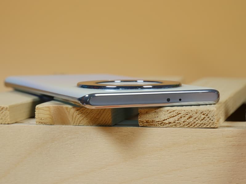 В лоток для карточек, расположенный естественно на торце, поскольку в заостренных боковых гранях он бы просто не уместился, можно установить две SIM-карты формата Nano-SIM без поддержки наиболее распространенных карт памяти формата micro SD. Разъем USB Type-C поддерживает небыстрый USB 2.0 (такое, к сожалению, встречается сплошь и рядом). Динамик здесь же, на нижнем торце, работает в одиночку без стереорежима. Издает не самый громкий, но вполне чистый и приятный насыщенный звук. Разъема 3,5 мм для проводных наушников не предусмотрели. Для беспроводных поддерживается протокол aptX HD.