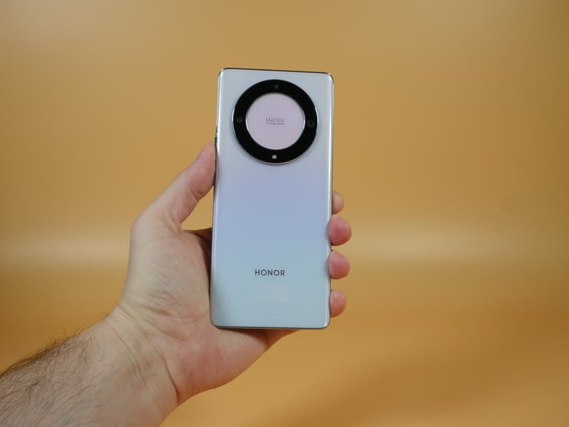 Другой наиболее заметный признак новинки, это ее роскошный с виду корпус. Он действительно эффектно смотрится со стороны, но... У Honor X9a, как и у прошлых моделей, максимально зауженные, почти заостренные боковины. Обе панели – передняя и задняя – имеют сильные скосы, поэтому аппарат без чехла в сухих руках просто прокручивается в ладони словно кусочек мыла.