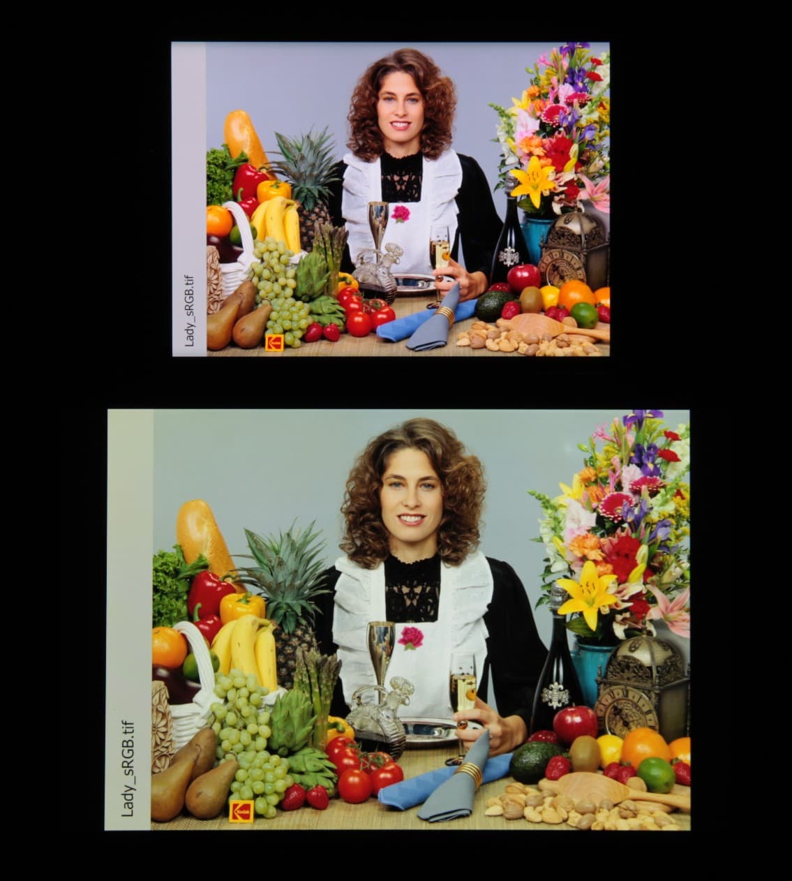 Отметим, что на экранах с уширенным цветовым охватом (без соответствующей коррекции) цвета́ обычных изображений, оптимизированных для устройств sRGB, выглядят неестественно насыщенными. Отсюда и рекомендация: в большинстве случаев смотреть кино, фотографии и все естественное лучше при выборе профиля Обычные.