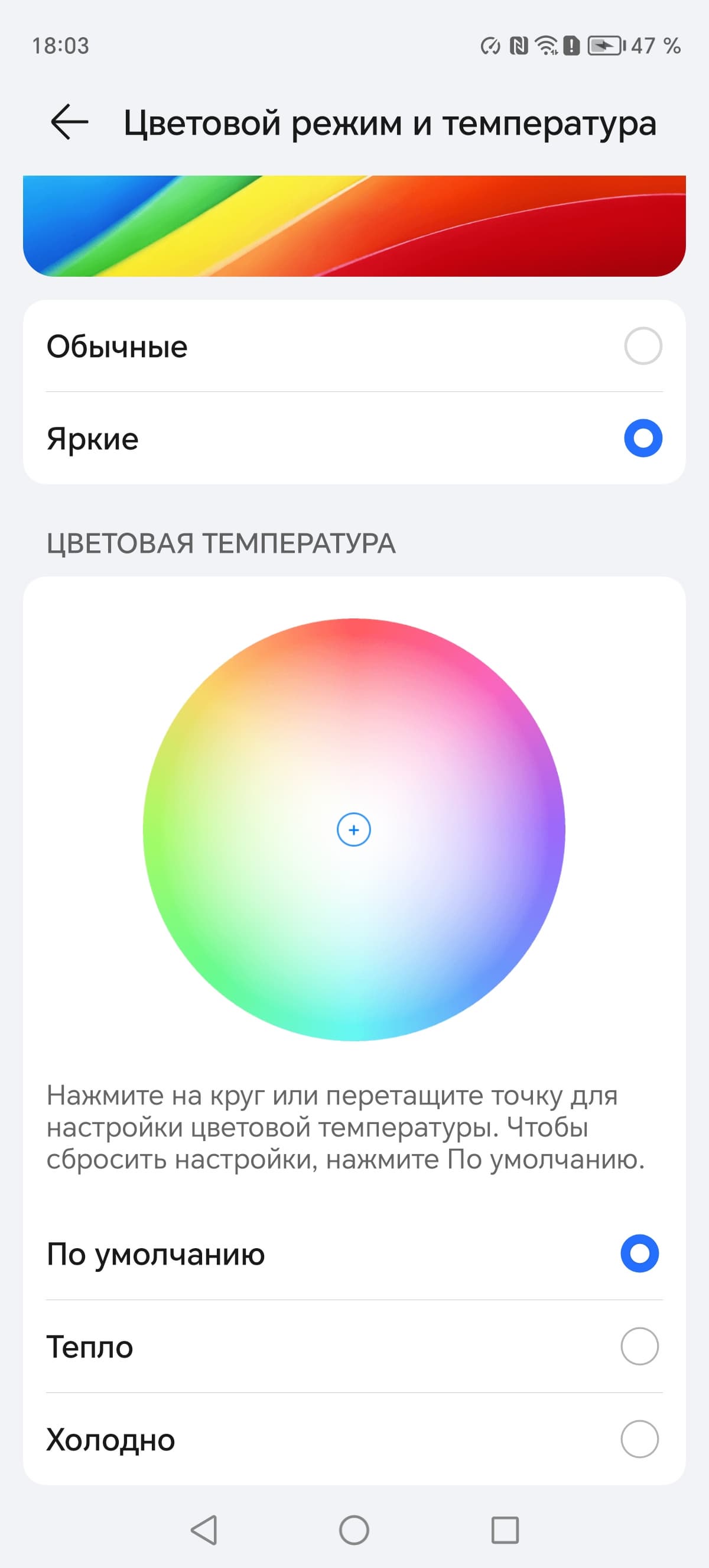 Фотография выше получена при активном профиле Обычные [цвета] в настройках экрана, всего их два: