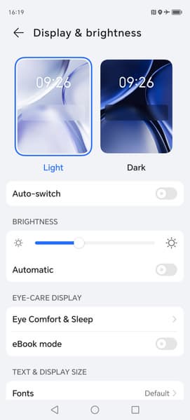 При выводе белого поля во весь экран и при ручном управлении яркостью ее максимальное значение составило 570 кд/м² в обычных условиях, а на очень ярком свету оно может повышаться до 950 кд/м². Максимальная яркость очень высокая. В данном случае чем меньше площадь белого на экране, тем он светлее, то есть фактическая максимальная яркость белых участков будет почти всегда выше указанных значений. В итоге, учитывая отличные антибликовые свойства, читаемость экрана днем на солнце должна быть на хорошем уровне. Минимальное значение яркости — 2 кд/м², пониженный уровень яркости без проблем позволяет использовать устройство даже в полной темноте. Работает автоматическая регулировка яркости по датчику освещенности (он расположен под экраном в верхней части справа от фронтальной камеры). Работа этой функции зависит от положения ползунка регулировки яркости: им пользователь может попытаться выставить желаемый уровень яркости в текущих условиях. Если оставить все по умолчанию, то в полной темноте функция автояркости уменьшает яркость до 4 кд/м² (очень темно), в условиях освещенного искусственным светом офиса (примерно 550 лк) устанавливает на 160 кд/м² (нормально), в очень ярком окружении (условно соответствует нахождению на прямом солнечном свету) повышает до 950 кд/м² (до максимума, так и нужно). Результат нас не совсем устроил, поэтому мы в полной темноте чуть увеличили яркость, получив для трех условий, указанных выше, следующие значения: 15, 140 и 950 кд/м² (что и было нужно). Получается, что функция автоподстройки яркости работает адекватно и в какой-то степени позволяет пользователю настраивать свою работу под индивидуальные требования. (Впрочем, есть и странность — после перехода от среднего уровня внешней освещенности к полной темноте яркость экрана снижается только после отключения экрана и последующего пробуждения смартфона.)