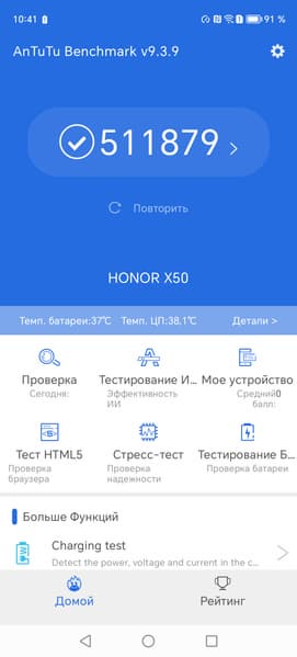 Тестирование в комплексных тестах AnTuTu и GeekBench: