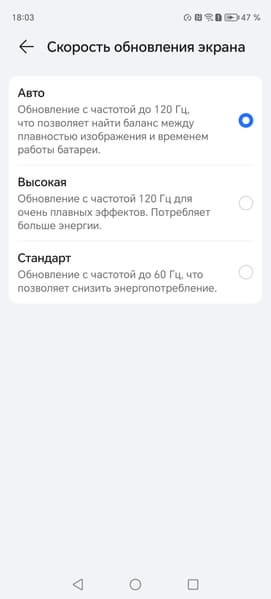 В настройках экрана можно включить режим с повышенной до 120 Гц частотой обновления: