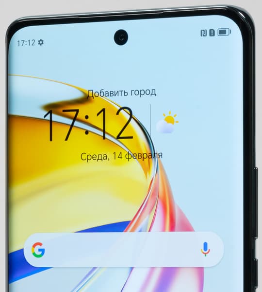 Цветопередача хорошая, цвета в меру насыщенные, цветовой баланс у экранов немного различается. Напомним, что фотография не может служить надежным источником сведений о качестве цветопередачи и приводится только для условной наглядной иллюстрации. В частности, выраженный красноватый оттенок белого и серого полей, присутствующий на фотографиях экрана смартфона, при перпендикулярном взгляде визуально отсутствует, что подтверждается аппаратными тестами с помощью спектрофотометра. Причина в том, что спектральная чувствительность матрицы фотоаппарата неточно совпадает с этой характеристикой человеческого зрения. Заметим, что в данном случае картинка занимает в высоту (при ландшафтной ориентации экрана) всю доступную для вывода изображения область и заходит на загнутые края экрана, что приводит к легкому затемнению и искажению цвета. Также на свету эти области почти всегда бликуют, что еще больше мешает при просмотре изображений, выведенных на весь экран. И даже картинка фильмов с соотношением сторон 16:9 заходит на загибы, что очень не к месту в случае видео.