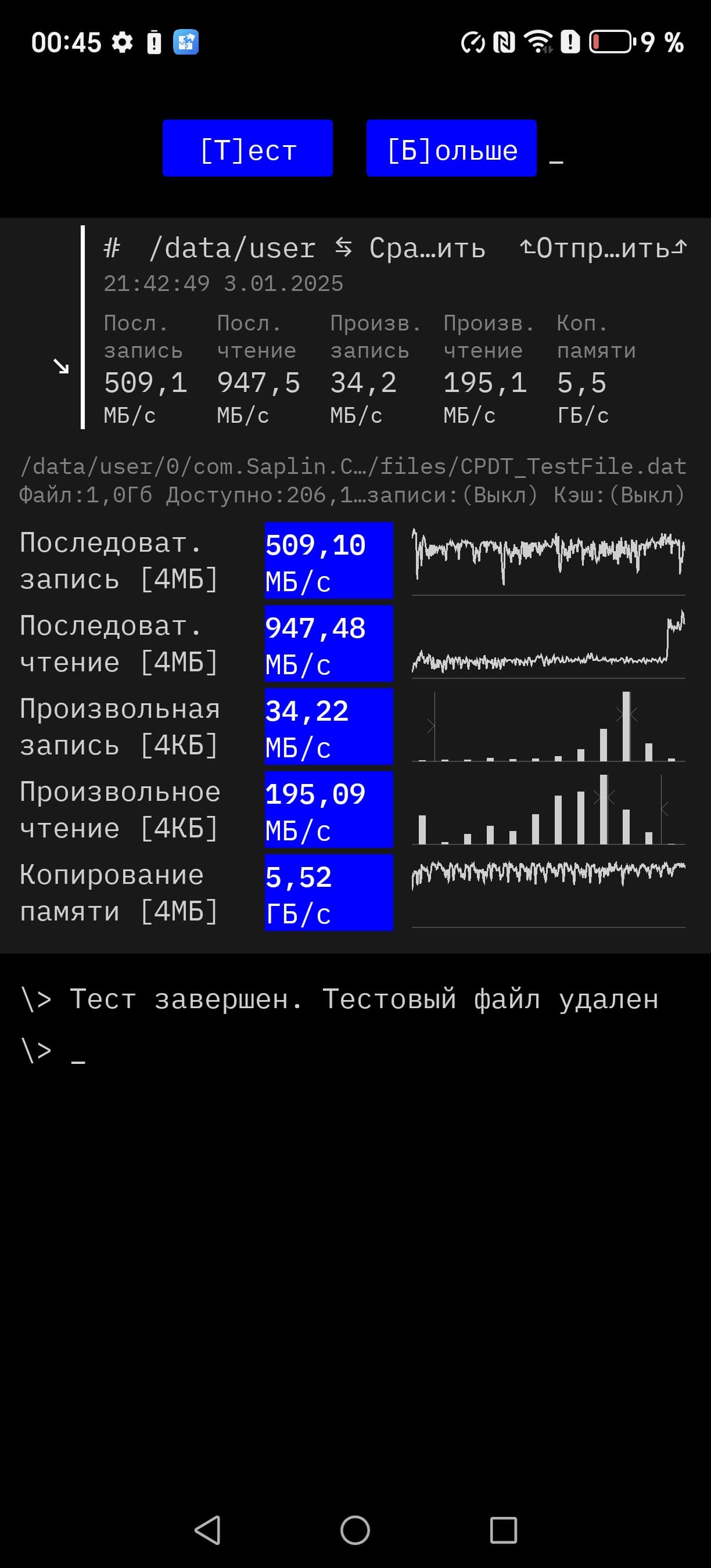 Результаты тестирования скорости памяти: