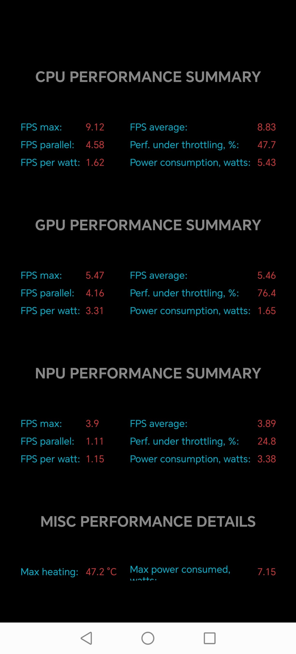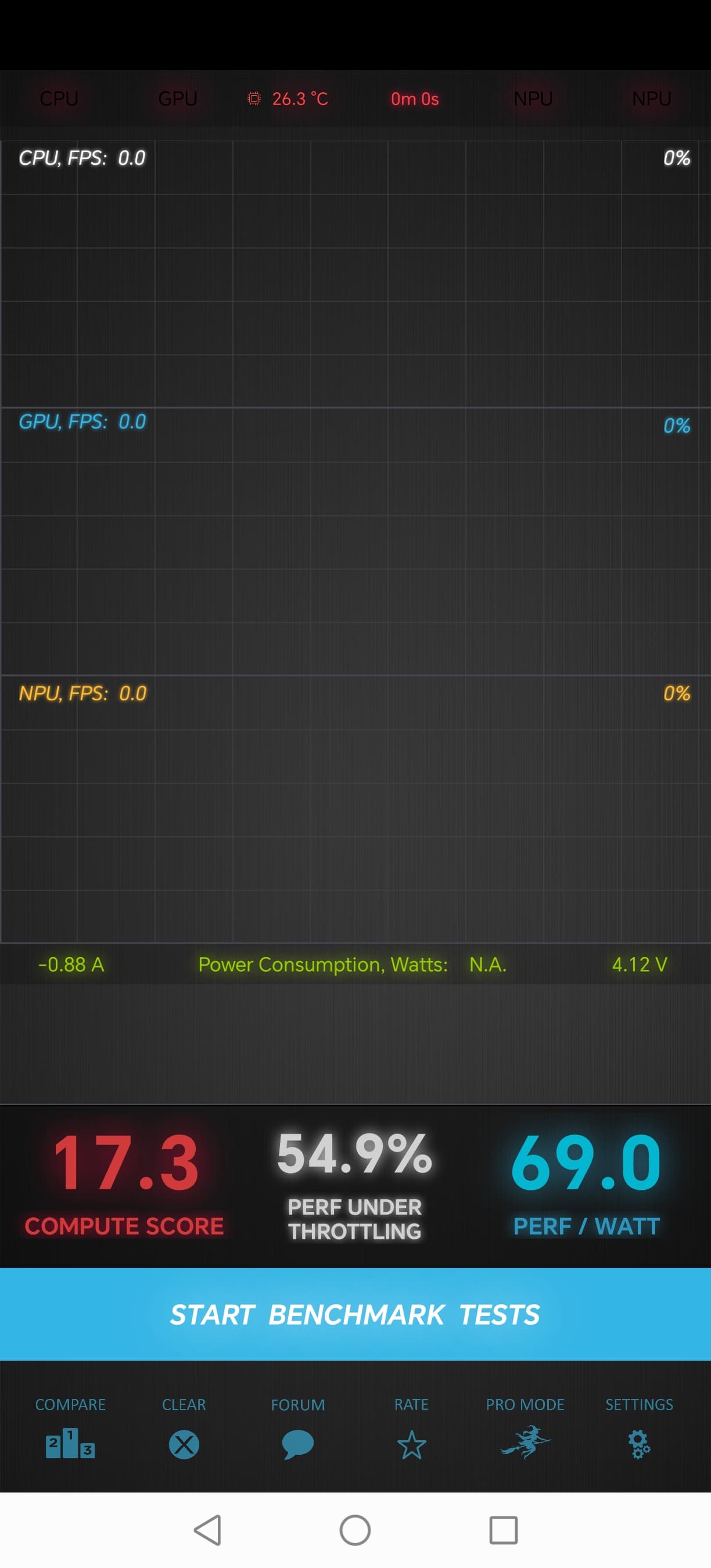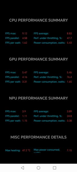 Тест на снижение производительности при нагреве мы проводим с помощью программы Burnout Benchmark, которая позволяет нагружать CPU, GPU и NPU: