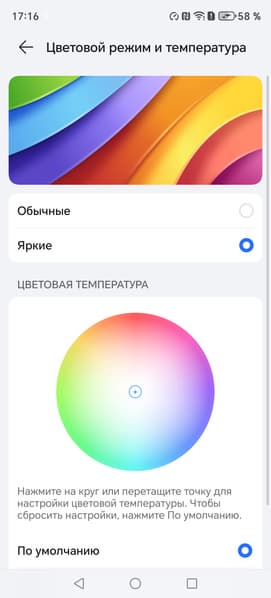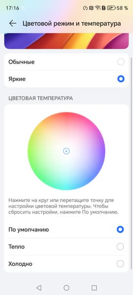 Фотография выше получена при активном профиле Обычные [цвета] в настройках экрана, всего их два: