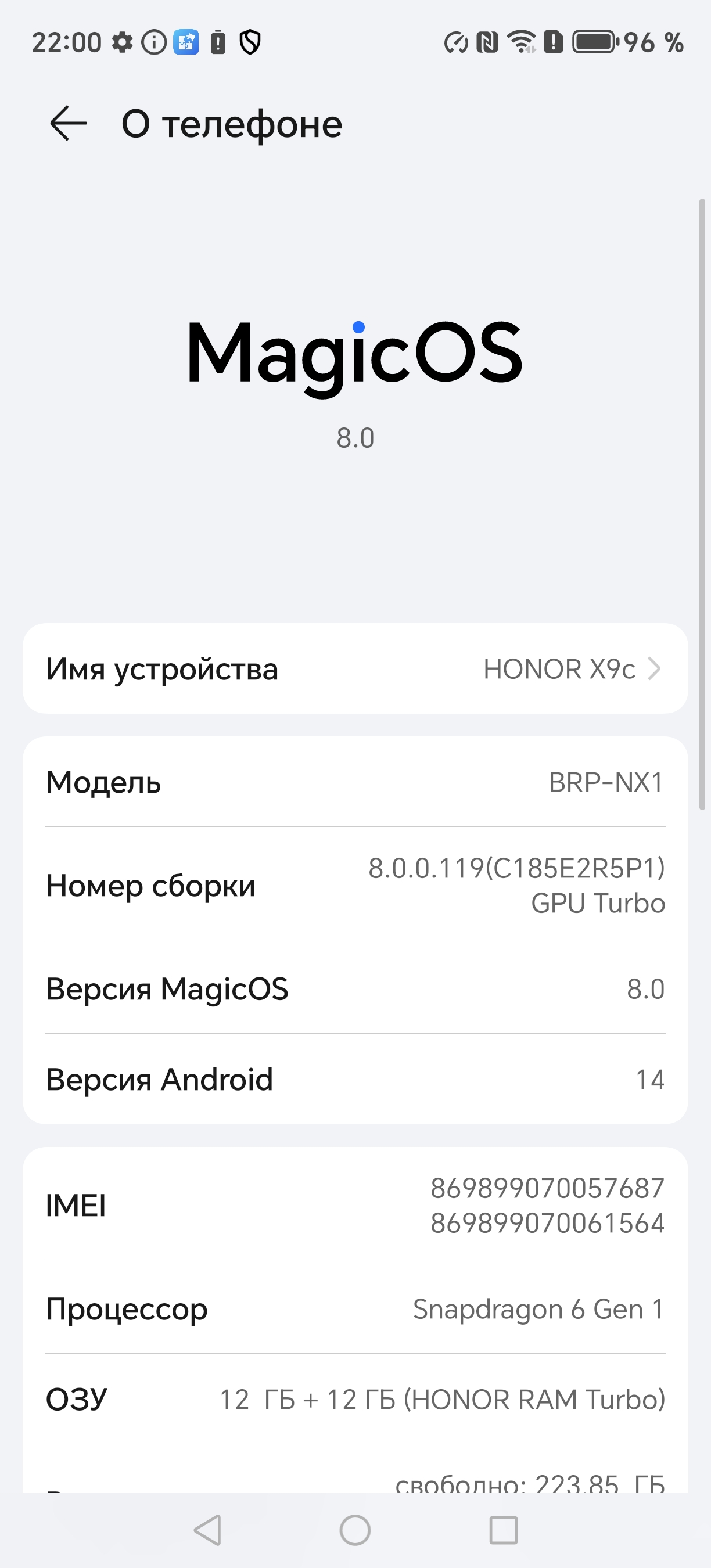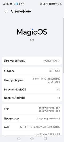 У смартфона Honor X9c стандартные сетевые возможности: поддерживаются сети вплоть до 5G, два диапазона Wi-Fi 6 и Bluetooth 5.1, есть поддержка NFC. На практике в пределах городской черты московского региона аппарат демонстрирует уверенную работу в беспроводных сетях, не теряет связь, быстро восстанавливает связь после вынужденного обрыва. Все необходимые встроенные датчики, вплоть до гироскопа, на месте.