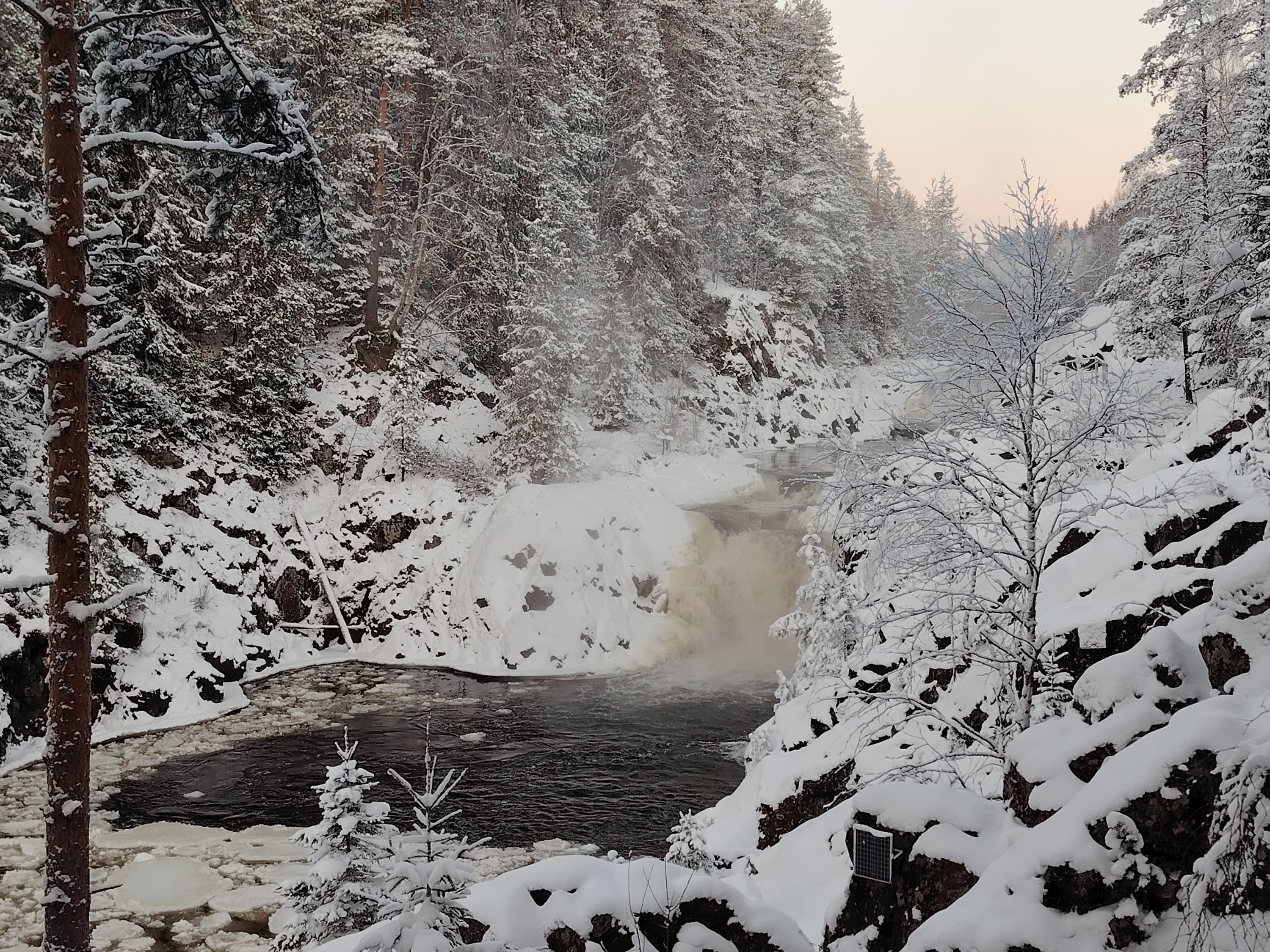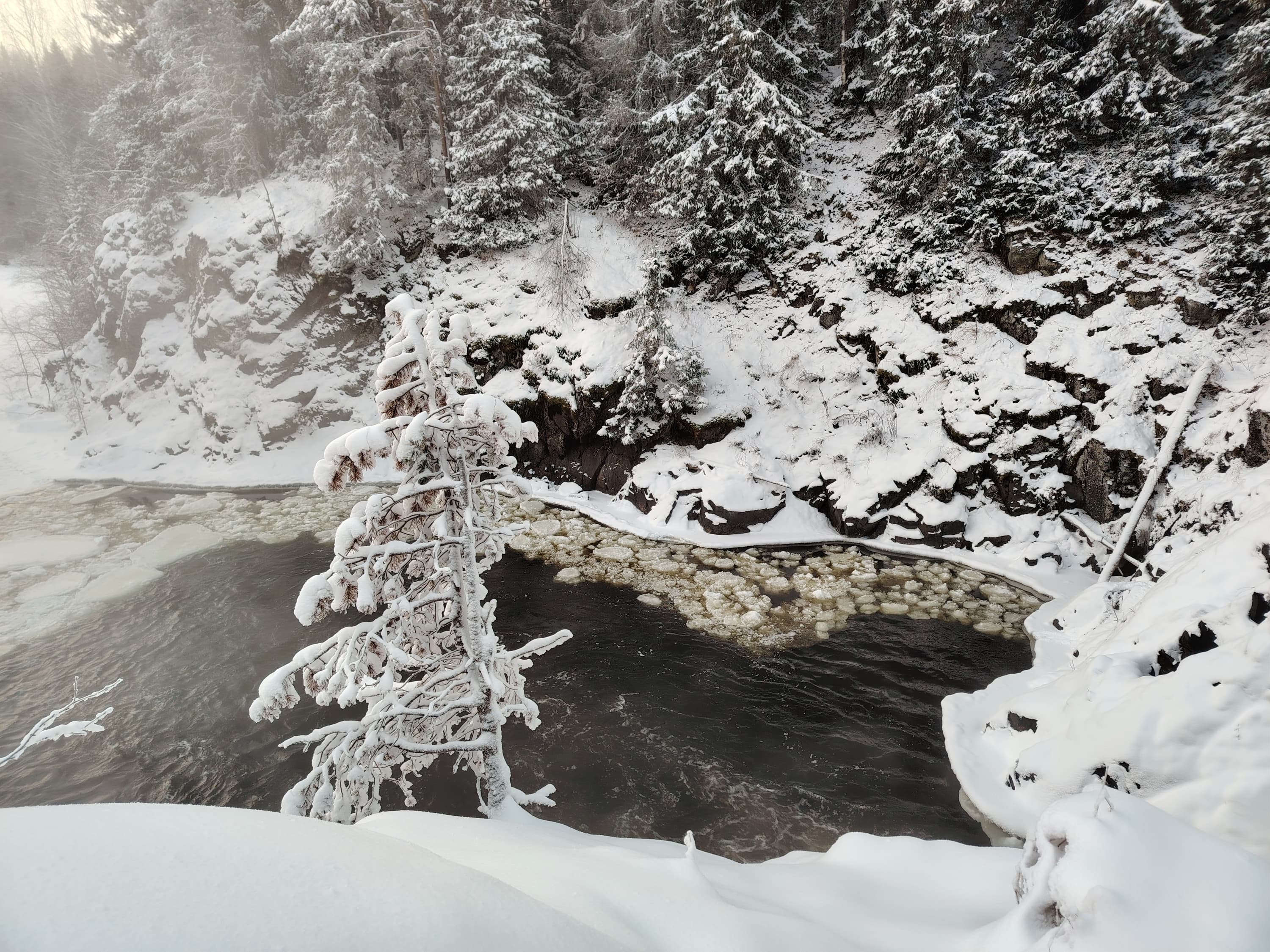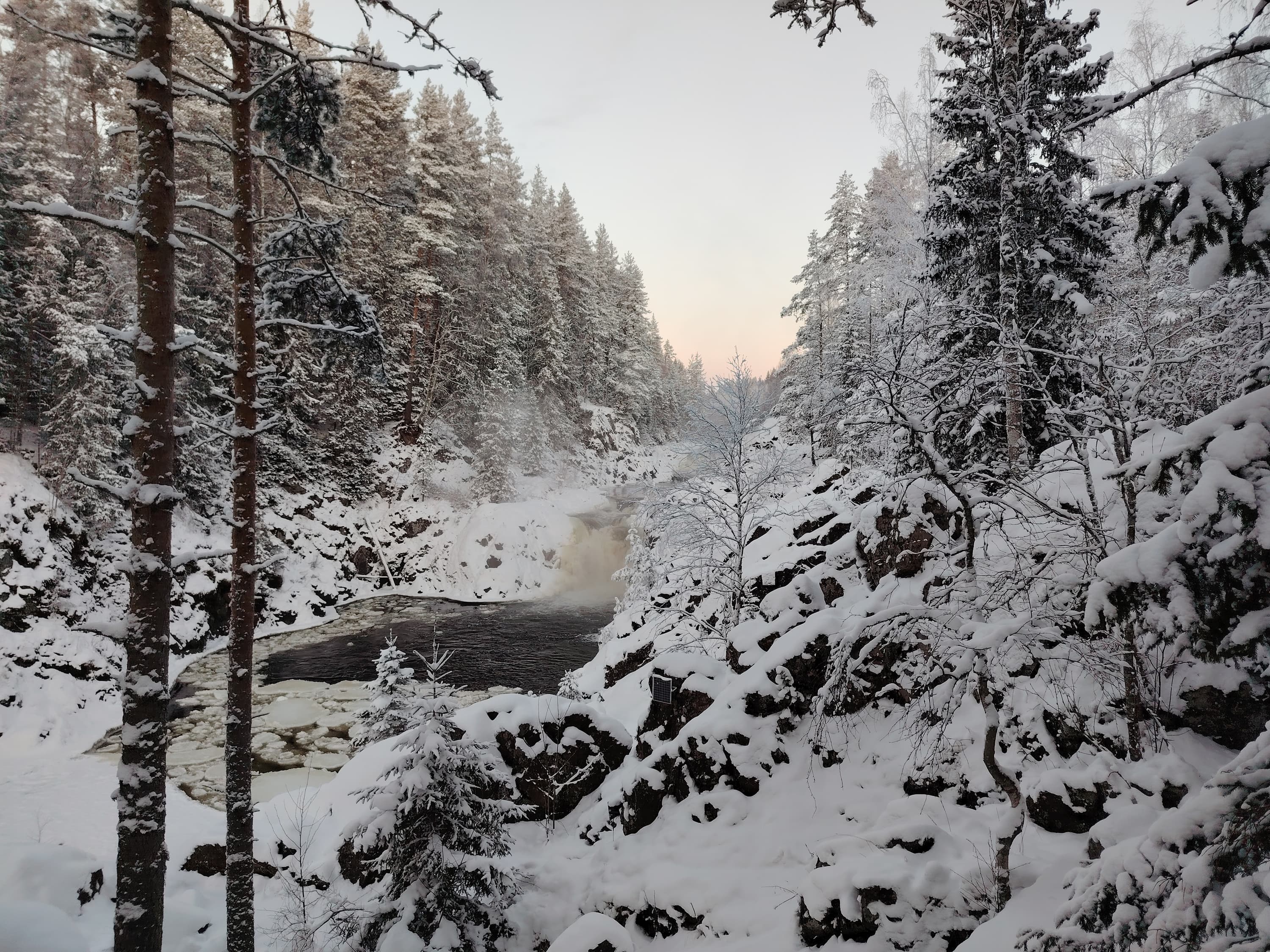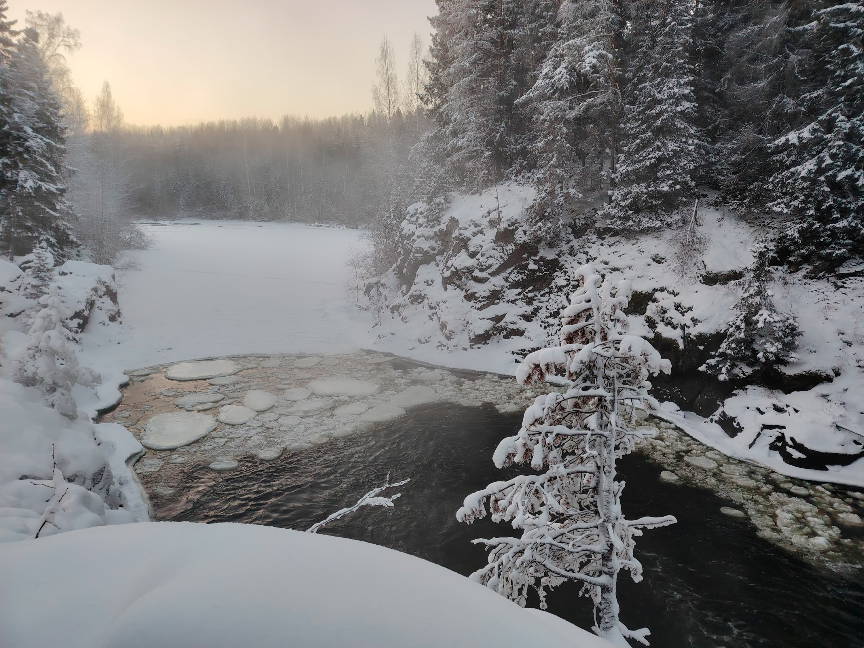 Основная камера имеет и быстрый адекватный фазовый автофокус и даже оптическую стабилизацию. По умолчанию она выдает снимки в разрешении 12 Мп, снимая с функцией объединения пикселей 9-в-1. Но можно переключиться и в режим съемки High-Res, получая фотографии размером 108 Мп. Конечно, для полных 108 Мп разрешения сенсора недостаточно, картинка рыхловатая, с не очень приятными шумами и отдельными артефактами, но в целом чуть больше деталей из нее выжать можно. При уменьшении фотографии проходят обработку с удалением шумов, коррекцией цветового баланса и выравниванием экспозиции, так что в обычных условиях 12-мегапиксельные фотографии предпочтительнее. Впрочем, случаются и ошибки при обработке, как на паре снимков ниже, где заснеженный пейзаж еще сильнее ушел в синий.
