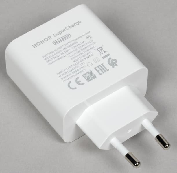 Комплект включает сетевой блок питания мощностью 66 Вт, соединительный кабель и защитный чехол.