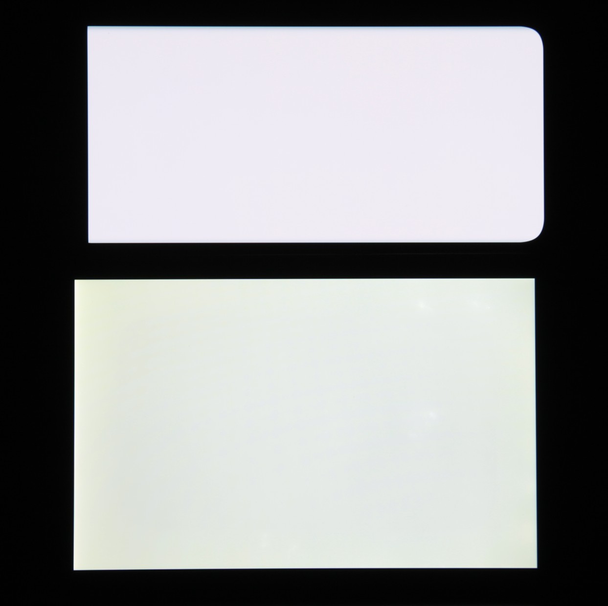 Экран характеризуется великолепными углами обзора. Яркость под углом у обоих экранов заметно уменьшается (если сравнивать с Nexus 7), но в случае смартфона падение яркости выражено гораздо меньше. В итоге, даже если установить формально одинаковую яркость, то экран этого смартфона визуально выглядит гораздо более ярким (в сравнении с ЖК-экранами), так как на экран мобильного устройства часто приходится смотреть как минимум под небольшим углом. Правда, у смартфона белый цвет при отклонении на большие углы приобретает легкий сине-зеленый оттенок, но черный цвет остается просто черным под любыми углами. Он настолько черный, что параметр контрастности в данном случае неприменим. Для сравнения приведем фотографии, на которых на экраны смартфона и второго участника сравнения выведены одинаковые изображения, при этом яркость экранов изначально установлена примерно на 200 кд/м², а цветовой баланс на фотоаппарате принудительно переключен на 6500 К.