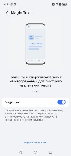 В качестве программной платформы смартфон основывается на ОС Android 15 с фирменной оболочкой MagicOS 9. К этой части претензий нет совсем. Интерфейс у Honor идеально оптимизирован, четко и понятно организован, имеет массу облегчающих жизнь функций, в том числе, на основе ИИ-алгоритмов. Все они собраны здесь в единый раздел Honor AI (для перевода телефонных разговоров «на ходу», для расшифровки аудиозаписей, для умной работы с вебстраницами и широкими возможностями редактирования, доработки текстов. Верхняя шторка разделена на две части в зависимости от места оттягивания. Есть полноценная поддержка сервисов Google и магазин Google Play Store.