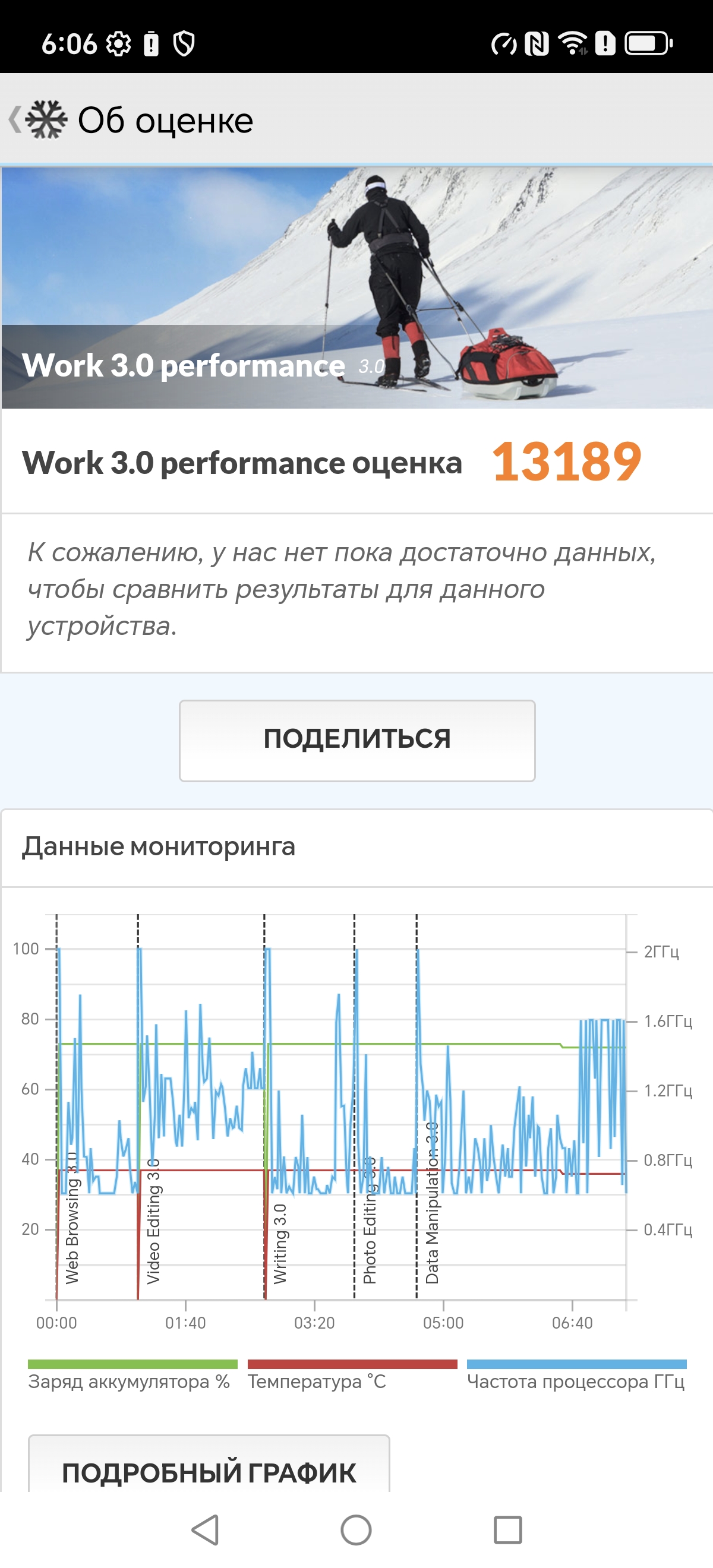Тест на снижение производительности при нагреве мы проводим с помощью программы Burnout Benchmark, которая позволяет нагружать CPU, GPU и NPU. Уровень тротлинга при нагрузке на GPU (то бишь в играх) средний.