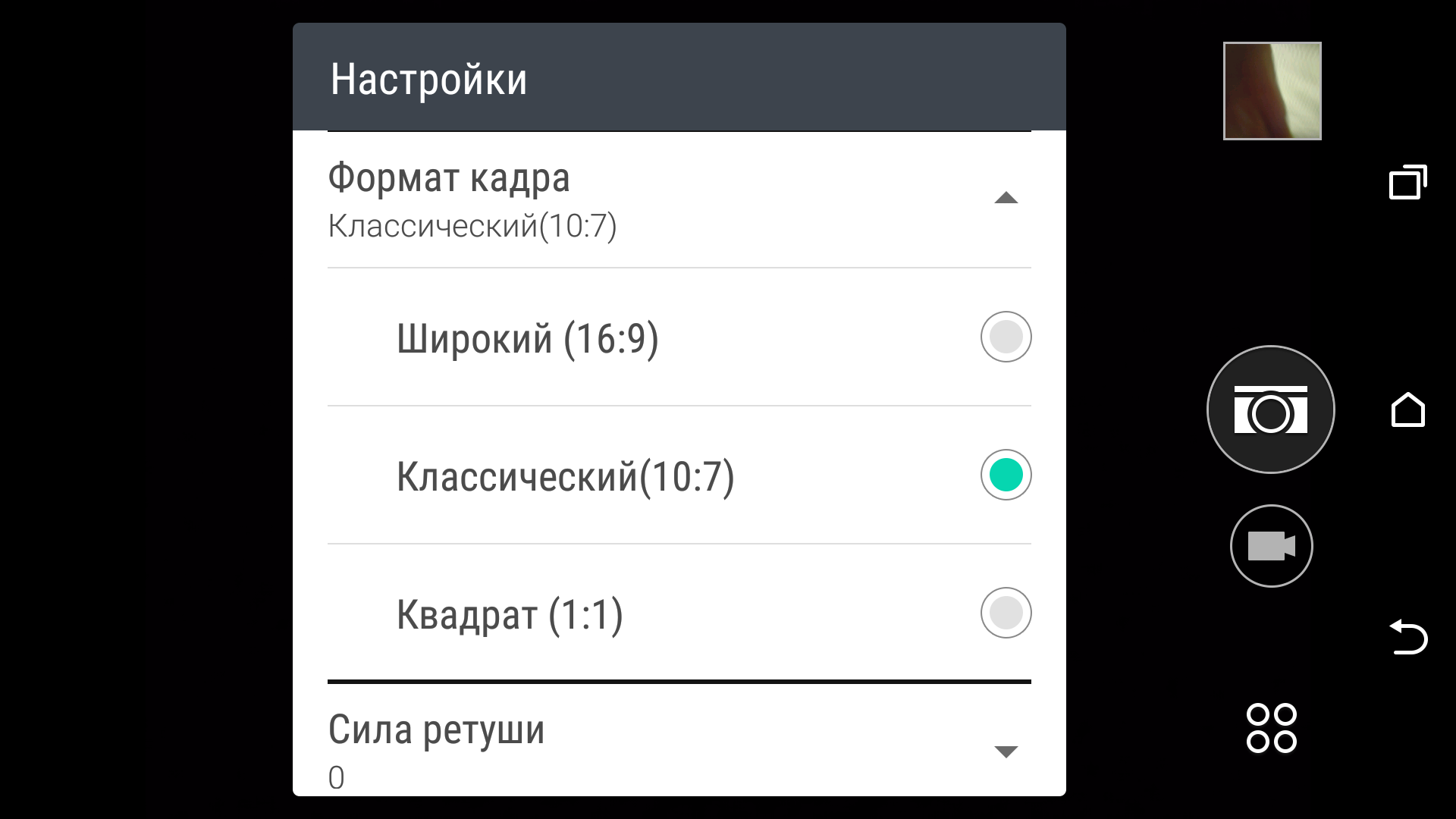 Почему-то из трех возможных вариантов соотношения сторон классическим здесь называется 10:7, а 4:3 отсутствует, что говорит о нестандартном сенсоре, поскольку максимальное разрешение снимка получается именно при соотношении сторон 10:7.