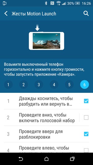 Яркость дисплея можно подстраивать вручную, а можно задействовать автоматическую регулировку, основанную на работе датчика освещенности. Технология мультитач здесь позволяет обрабатывать 10 одновременных прикосновений, но для этого, как водится в смартфонах НТС, необходимо разрешить в настройках распознавание жестов 3 пальцев. При поднесении смартфона к уху экран блокируется с помощью датчика приближения. Экран можно разблокировать двойным постукиванием по стеклу, есть возможность работы с экраном в перчатках.