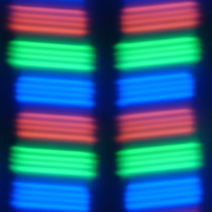 В данном смартфоне используется матрица типа IPS. Микрофотографии демонстрируют типичную для IPS структуру субпикселей: