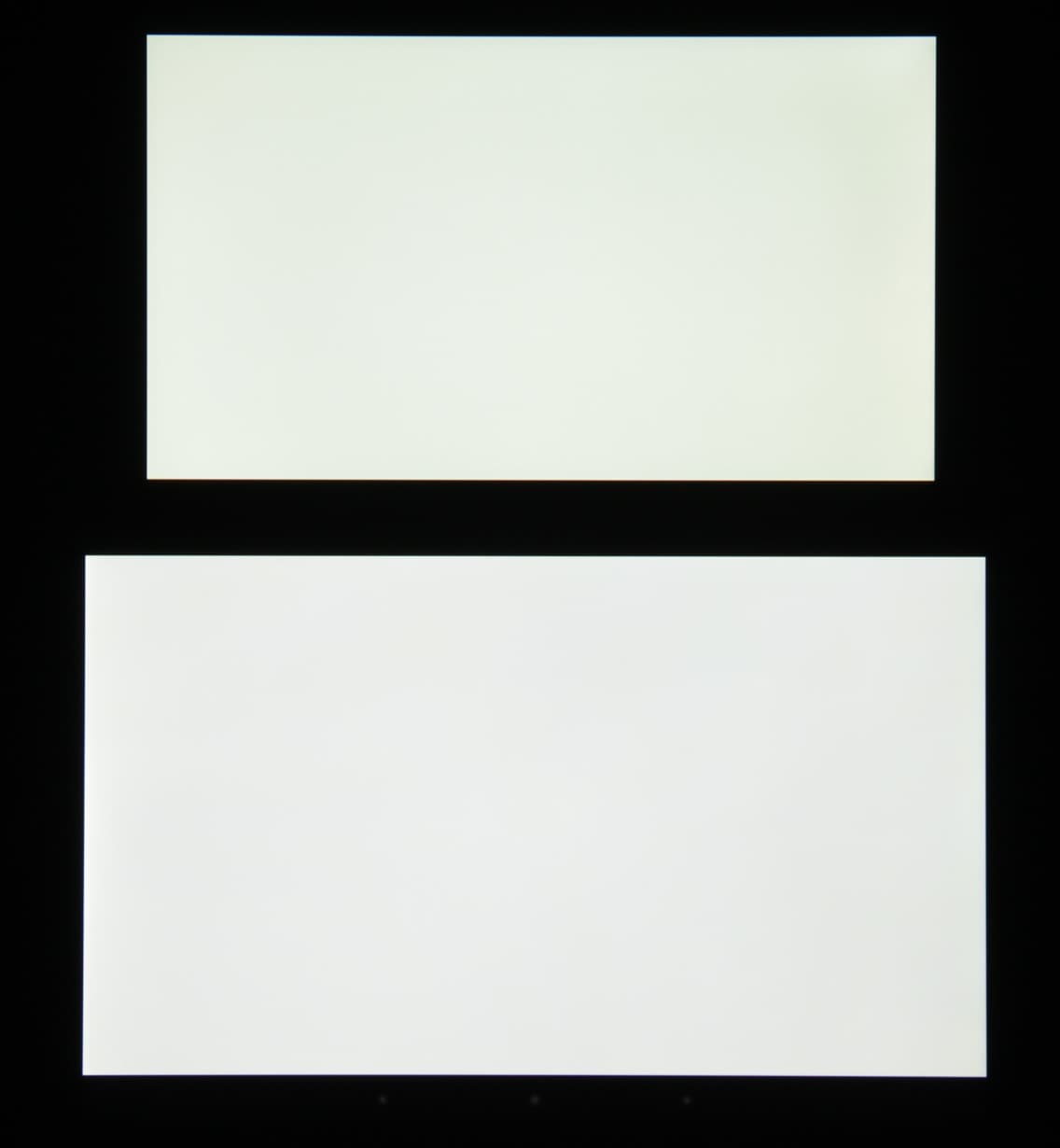 Экран имеет хорошие углы обзора без значительного сдвига цветов даже при больших отклонениях взгляда от перпендикуляра к экрану и без инвертирования оттенков. Для сравнения приведем фотографии, на которых на экраны Huawei Ascend Mate 7 и Nexus 7 выведены одинаковые изображения, при этом яркость экранов изначально установлена примерно на 200 кд/м², а цветовой баланс на фотоаппарате принудительно переключен на 6500 К. Перпендикулярно к экранам белое поле: