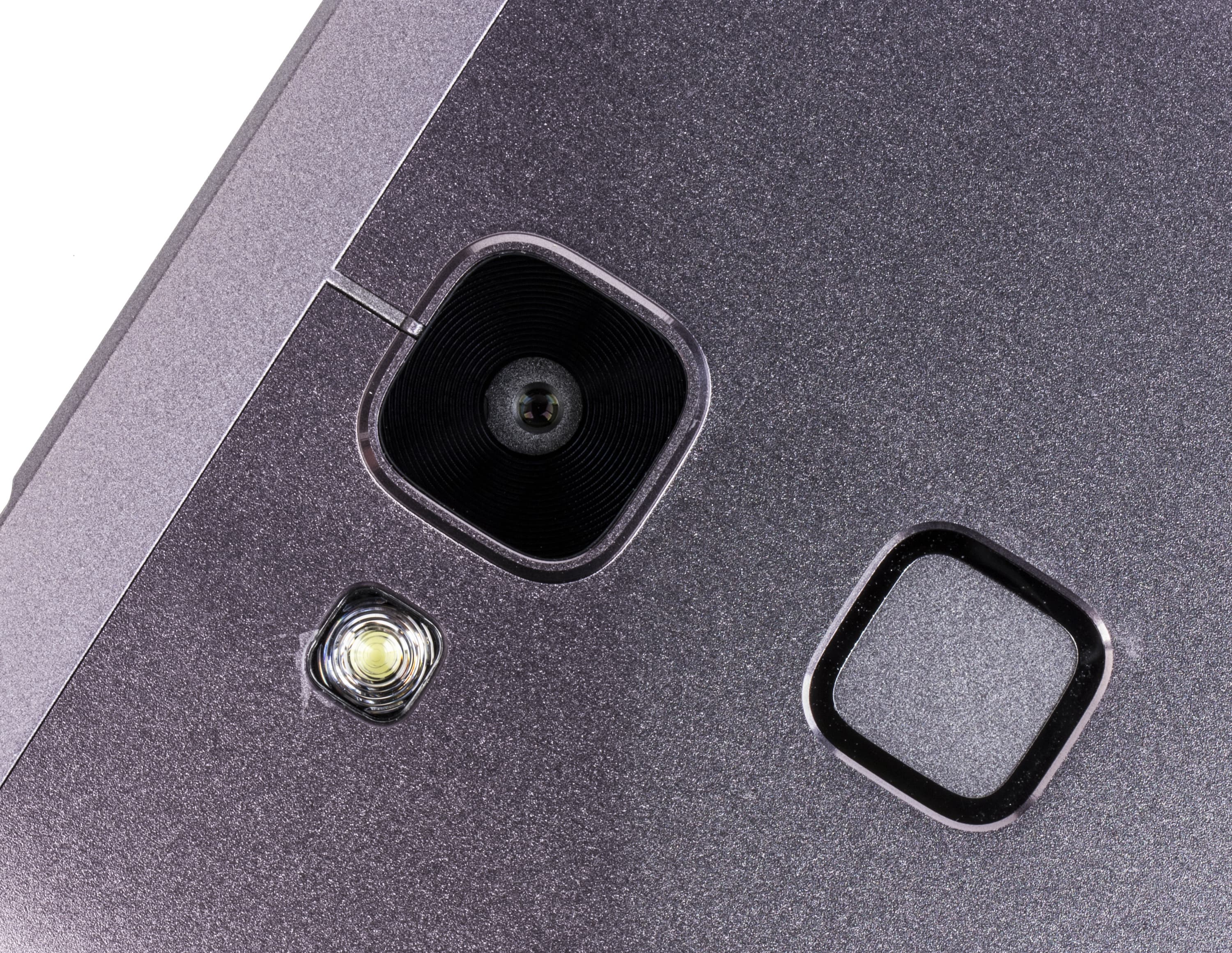 Окошко камеры на задней стенке обрамлено металлическим ободком, слегка приподнимающим его над поверхностью. Рядом виднеется светодиодная вспышка, состоящая из одной секции, которая может работать в качестве фонарика с помощью предустановленной программы.