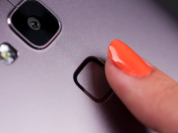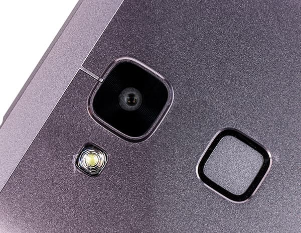 Помимо привычных глазков камеры и вспышки, на задней стенке Huawei Ascend Mate 7 можно обнаружить один не совсем привычный элемент. Чуть ниже квадратного стеклышка тыльной камеры разработчики установили такого же размера квадратную сенсорную панельку для считывания отпечатков пальцев. Датчик отпечатков пальцев размером 9,16×9,16 мм запоминает до пяти наборов различных отпечатков для обычного и гостевого режимов, предоставляя пользователю возможность переключать режимы для повышения защиты доступа к личным папкам или приложениям.