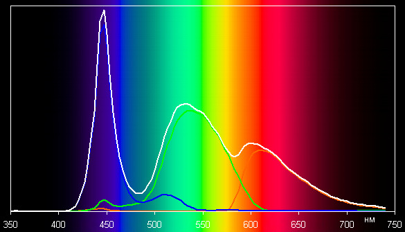 Спектры показывают, что светофильтры матрицы в умеренной степени подмешивают компоненты друг к другу: