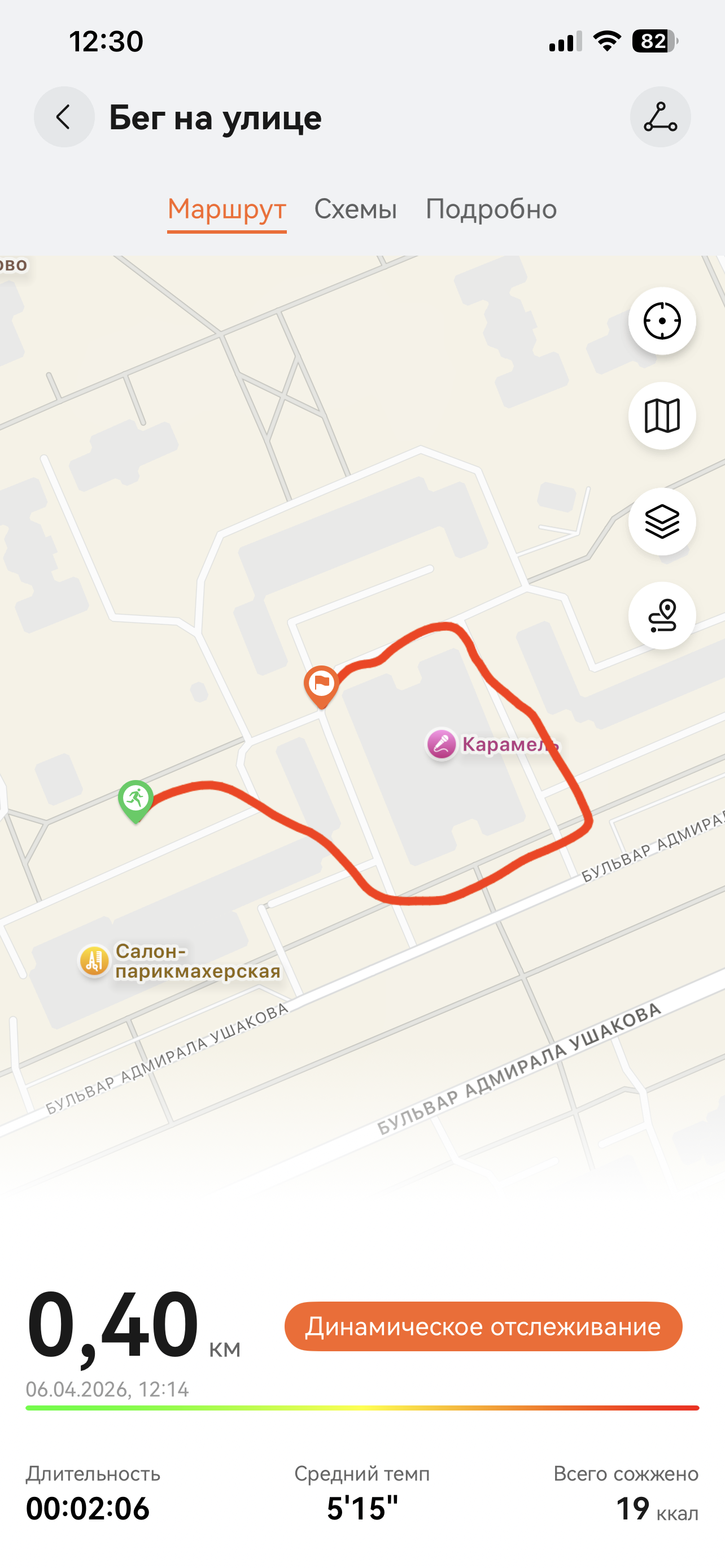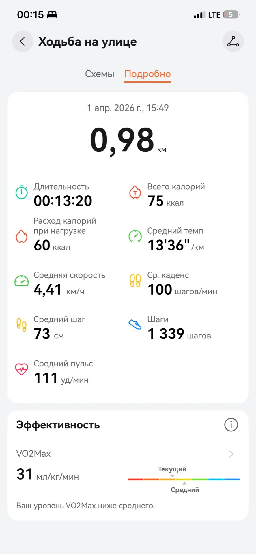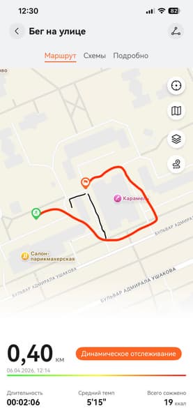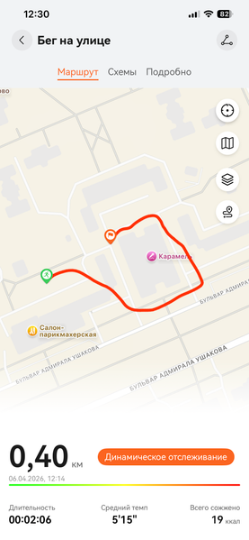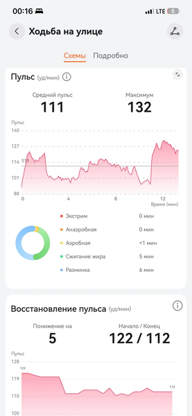 Лучше ситуация с ходьбой и прочими популярными видами спорта, связанными с передвижениями на улице. Но здесь заметим, что автоопределение тренировки срабатывает далеко не сразу, лишь через несколько минут, и результат начинает записываться только с того момента, когда вы подтвердили, что тренируетесь. И автоопределение тренировки надо предварительно включить, по умолчанию эта опция отключена. Кроме того, важно дождаться, пока браслет поймает сигнал спутников, иначе тренировка будет записана без трека. Вот как здесь, хотя ее продолжительность была не такой уж маленькой.