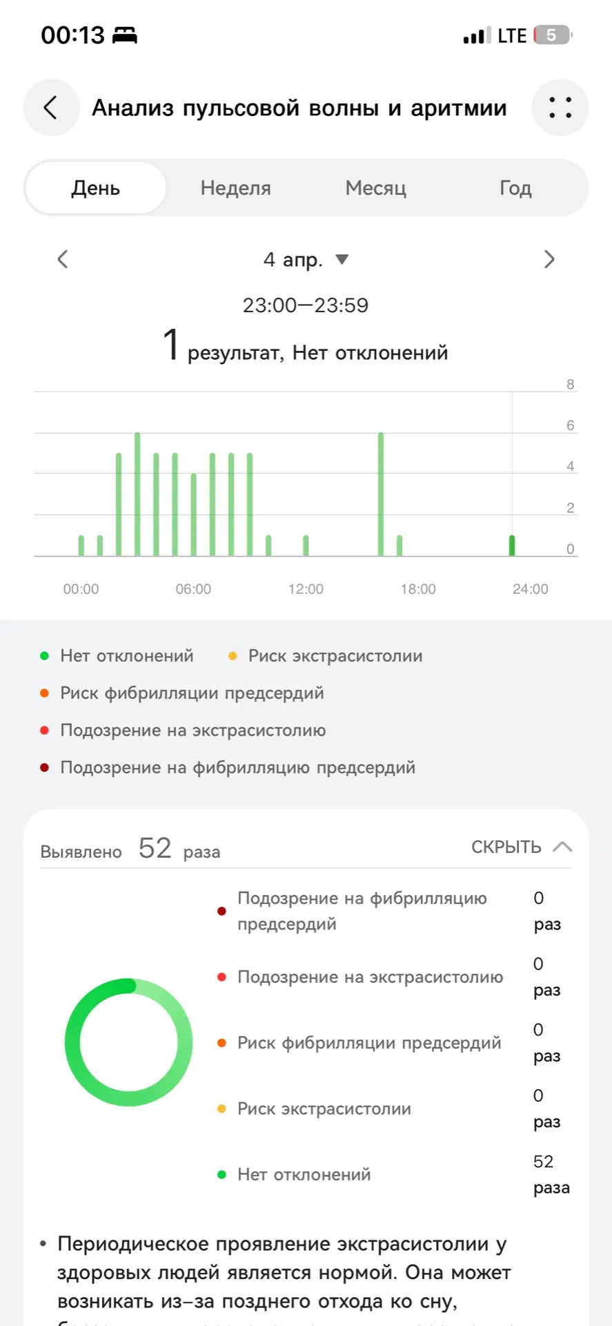 Опция, которую можно назвать нетипичной для недорогих умных браслетов (помимо, разумеется, геопозиционирования), это анализ пультовой волны и аритмии. У более дорогих носимых устройств Huawei набор приложений, связанных с работой сердечно-сосудистой системы, куда шире, однако радует, что теперь и в браслетах есть хоть что-то кроме простого измерения пульса.