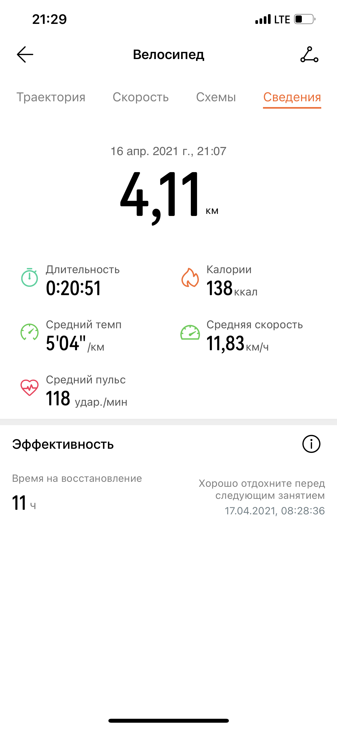 Катание на велосипеде, если удалось его запустить, тоже радует полнотой информации и достаточно подробным анализом.