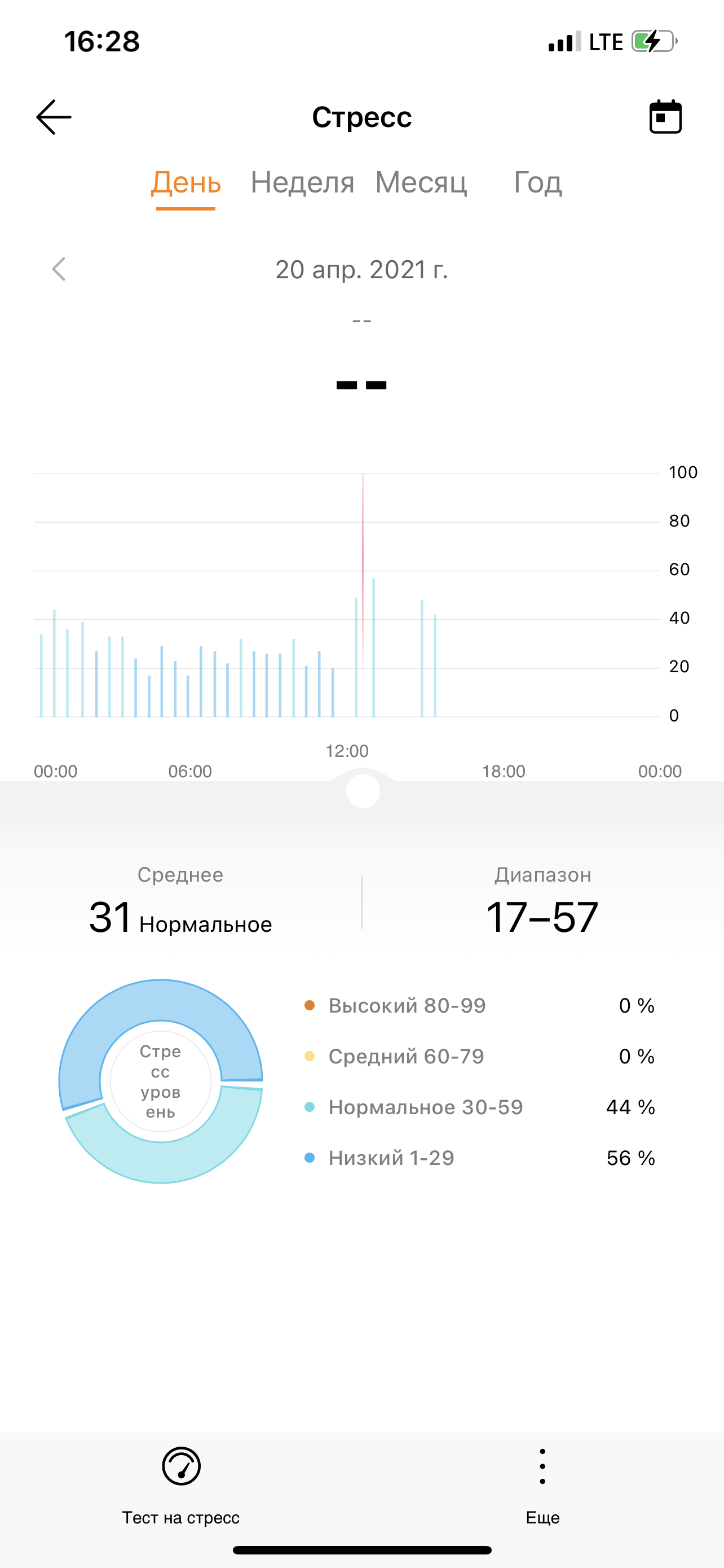 Еще Huawei Band 6 умеет отслеживать стресс. Понятно, что все это делается, прежде всего, на основе данных по пульсу. Но мы проверили — да, результат вполне правдоподобный. Хотя мелкие стрессы (типа, пришлось немного пробежаться, чтобы успеть на автобус) браслет не воспринимает всерьез. Может, оно и правильно.