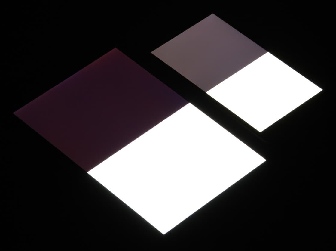 При перпендикулярном взгляде равномерность черного поля плохая, так как ближе к краю черный местами заметно высветляется: