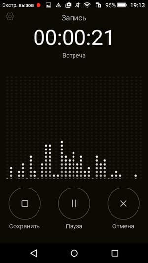 Аппарат имеет встроенное FM-радио с возможностью записи программ с эфира. Телефонные разговоры с линии смартфон штатными средствами записывать не умеет. Штатный диктофон имеется, микрофоны довольно чувствительные, запись ведется вполне чисто и качественно, но, как уже говорилось выше, если присутствуют сильные шумы, то с ними система шумоподавления справляется не слишком успешно.