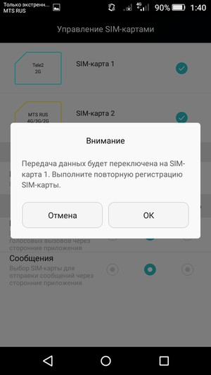 Смартфон поддерживает работу с двумя SIM-картами по стандарту Dual SIM Dual Standby. Радиомодуль здесь один, поэтому активный разговор может быть только один. Хотя Huawei одна из немногих компаний, которая может и два радиомодема установить, но здесь не тот случай. С сетями 3G/4G может работать SIM-карта в любом слоте, однако одновременно в этом режиме может работать лишь одна из карт (вторая будет работать только в 2G). Все настройки, как обычно, удобно объединены на единой странице. Такой продуманный сервис встречается далеко не у каждого производителя, это касается и оригинального интерфейса Android от самой Google. Там все эти настройки раскиданы аж по трем разным разделам, здесь же настраивать работу с двумя картами одно удовольствие.