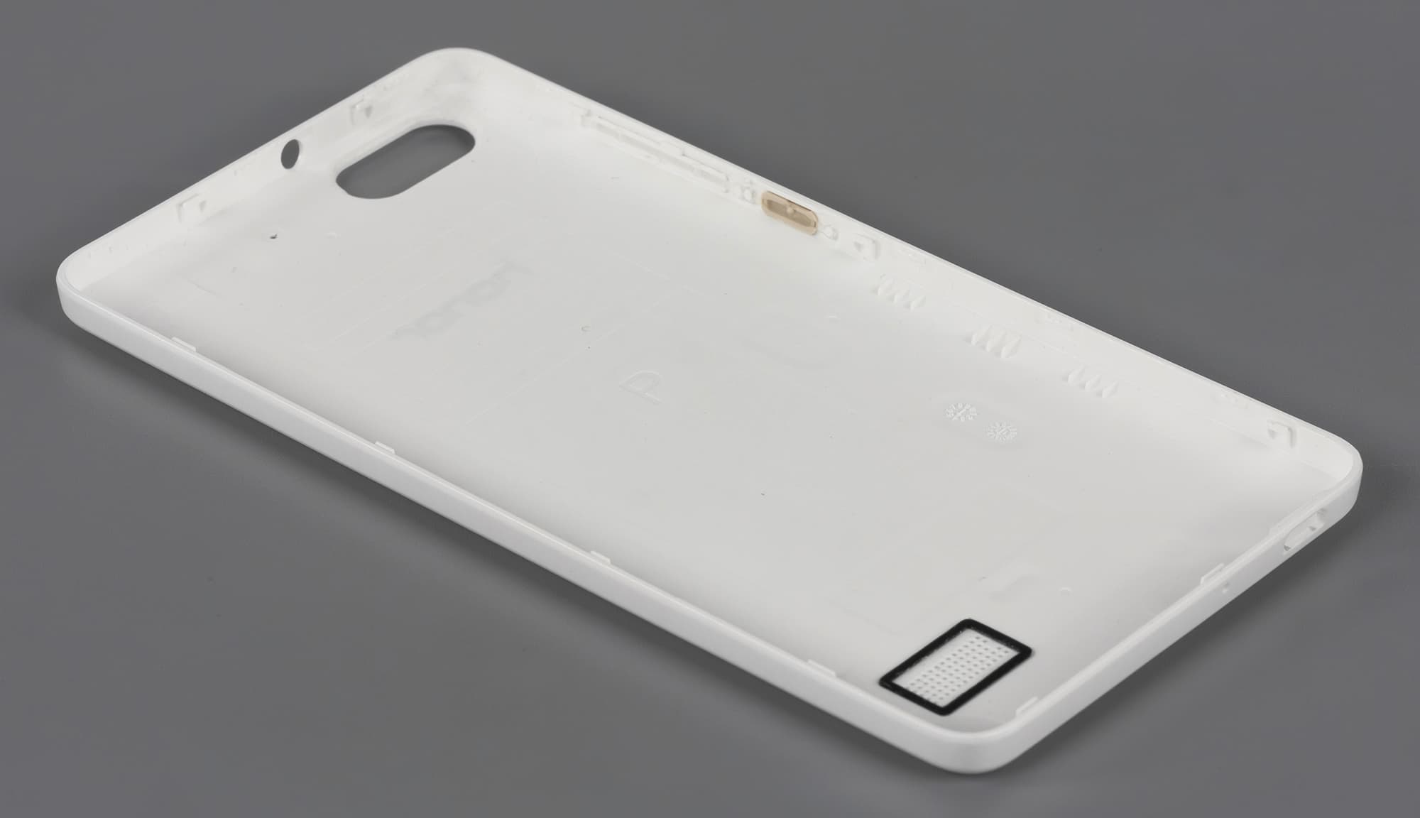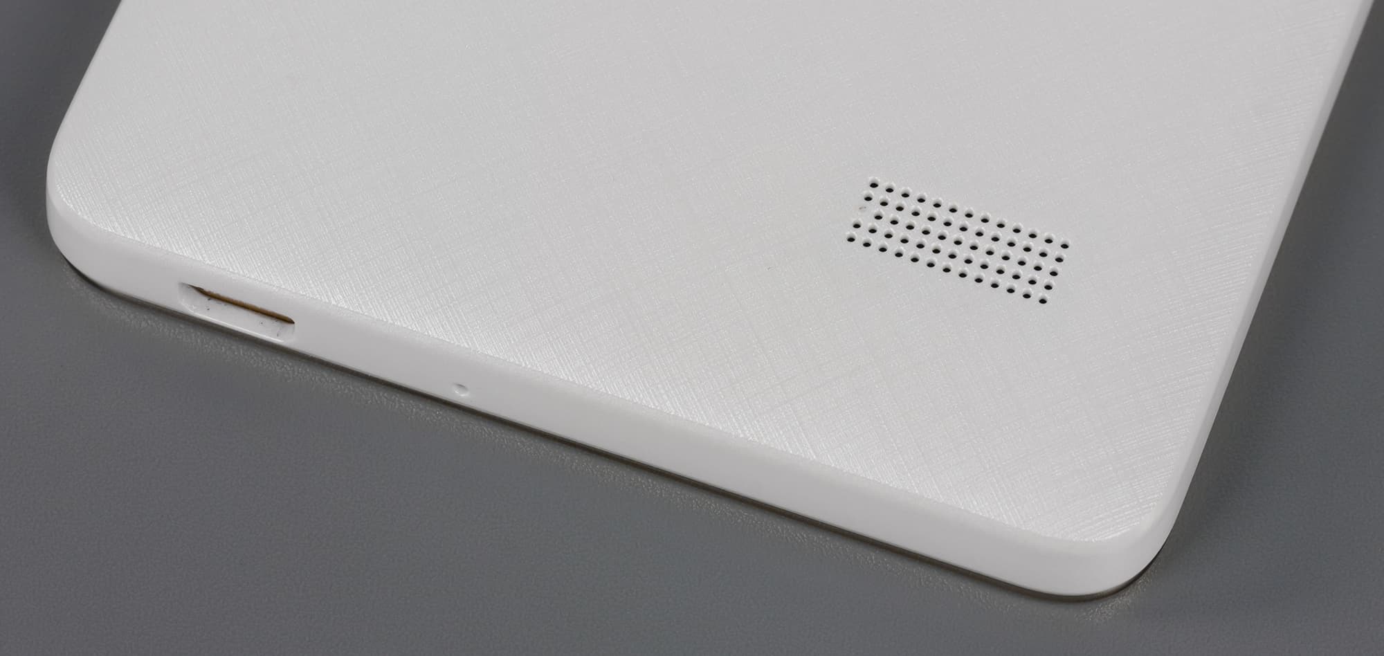 В нижней части задней стенки есть прорезь для выхода звука из основного динамика. Размещена она настолько неудачно, что звук лежащего на твердой поверхности смартфона практически полностью заглушается, что может привести к пропущенным звонкам и сообщениям. Прорезь оформлена в виде массива из мелких круглых отверстий, проделанных прямо в крышке.