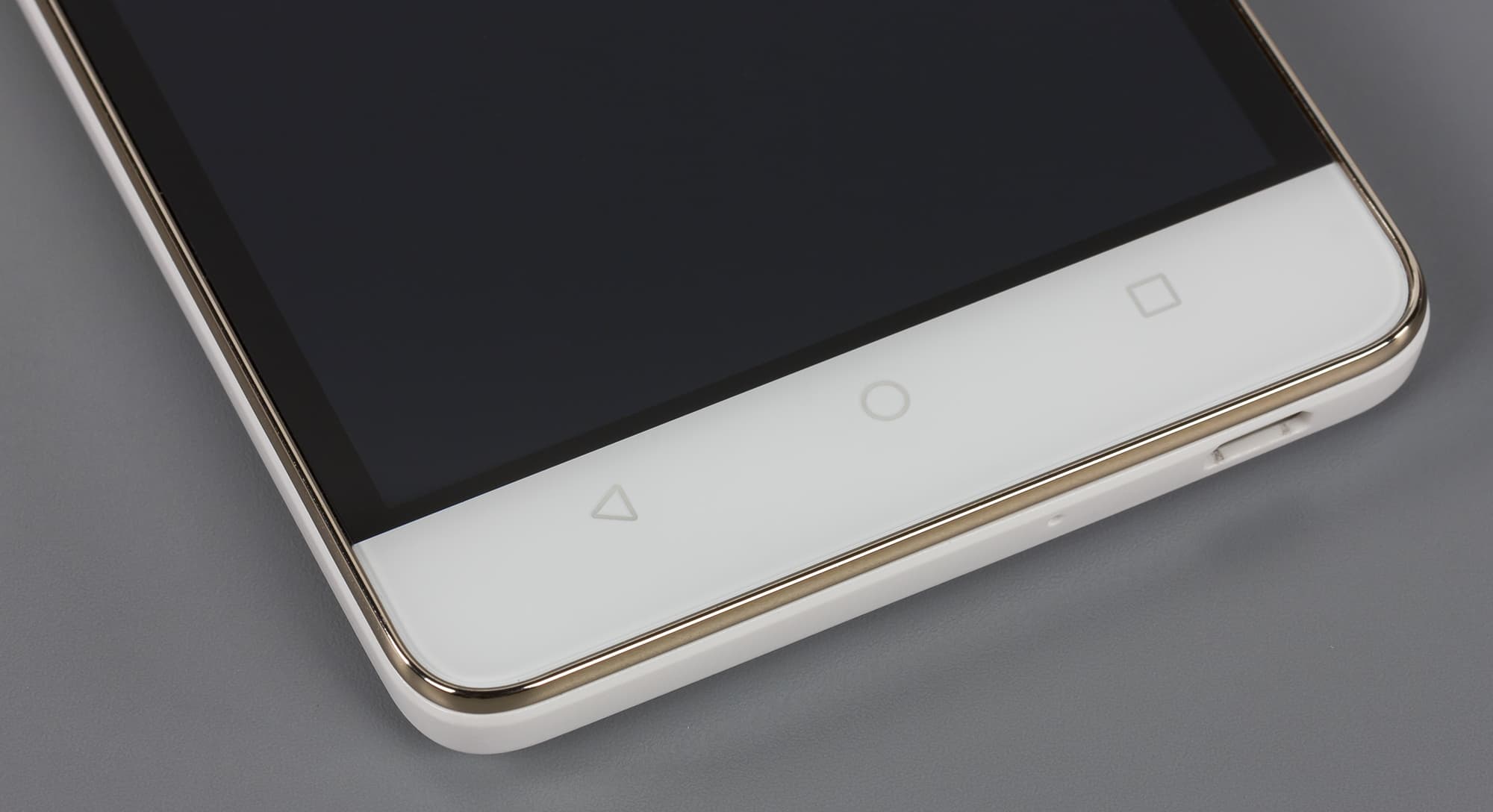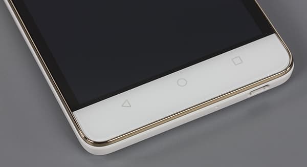 В нижней части под экраном размещены три привычные сенсорные кнопки управления системой и приложениями. Кнопки просто нарисованы блестящей краской на панели под стеклом и, к сожалению, не имеют никакой подсветки, так что лучше бы они, пожалуй, были виртуальными, экранными, как это сделано, например, у Huawei P8 Lite.