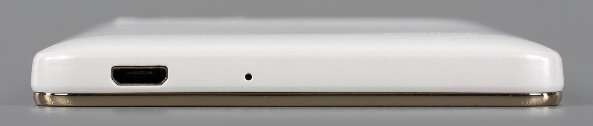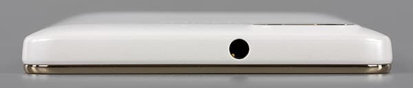 На верхнем торце имеется лишь аудиовыход на миниджек наушников 3,5 мм диаметром, а вспомогательный второй микрофон вынесен на заднюю поверхность. Разъемы крышками и заглушками не прикрыты, смартфон не обеспечен защитой от воды и пыли. Крепления для ремешка на корпусе тоже нет.