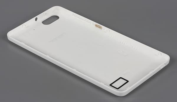 Снаружи задняя поверхность крышки текстурирована, и разработчики утверждают, что данная структура напоминает китайский шелк. Все боковые грани при этом остаются гладкими, хотя и матовыми, без глянца. На тыльной стороне, как обычно, можно найти окошко камеры, совмещенное в едином блоке с одинарной светодиодной вспышкой. Вспышка может играть роль фонарика, значок для включения данной функции находится в меню уведомлений.