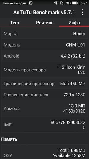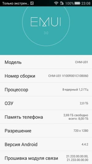 - Операционная система Android 4.4.2, EMUI 3.0