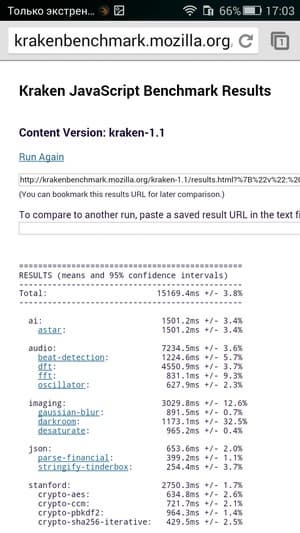 | Mozilla Kraken (мс, меньше — лучше) | 15169 | 15707 | 12738 | 13041 | 9685 |