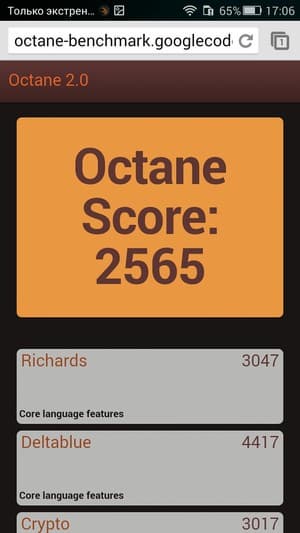 | Google Octane 2 (больше — лучше) | 2565 | 2707 | 3039 | 3090 | 4240 |