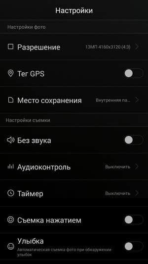 Основная камера имеет объектив f/2,0, используется 13-мегапиксельный модуль с автофокусом (есть возможность фокусировки на движущемся объекте) и одинарной светодиодной вспышкой. Фирменное меню настроек камеры здесь точно такое же, как в предыдущих моделях соответствующего уровня — например, Ascend G7. Большинство функций меню собраны в единый вертикальный свиток, а дополнительные режимы съемки выбираются по вызову нажатием на кнопку в правом верхнем углу. Помимо автоматического режима съемки, предусмотрено несколько специфических режимов, таких как Удачные фото, Украшение, Панорама, HDR и др. С помощью отдельного режима можно настроить фокус на разных зонах уже отснятого снимка.