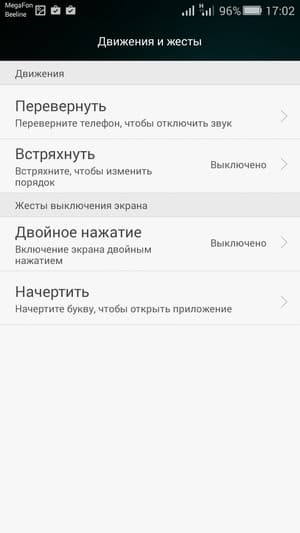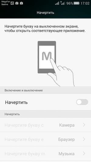 Все настройки по работе с жестами выделены в отдельный раздел меню. Сюда вошли как привычные двойное постукивание по стеклу, или разнообразные переворачивания и накрывания ладонью, так и разнообразные пассы в виде значков и букв, с помощью которых можно вызвать отдельные приложения и программы (например, плеер или камеру). Никуда не делась и специальная программная кнопка управления, вызывающая всплывающее меню быстрого доступа к некоторым часто используемым приложениям. Вертикальным жестом можно вызвать систему поиска по контактам, содержимому SMS-сообщений, календаря, заметок, медиафайлов, а также в интернете.